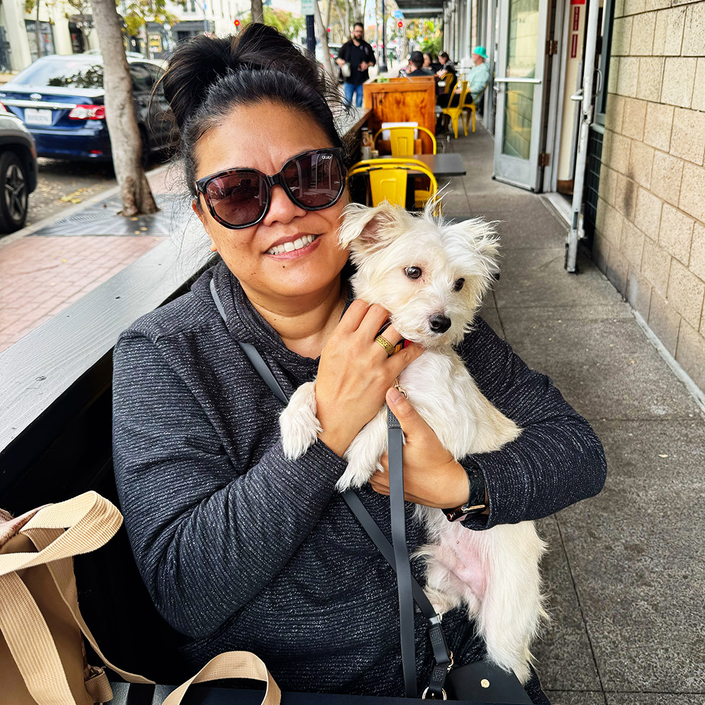 This pupper was rescued from a hoarding situation and perfect in every way – estimated only a year old (more potential years to share), mellow-tempered, and already potty trained. He was being fostered in West Hollywood, so I went up there to meet him, and the rest is history.
