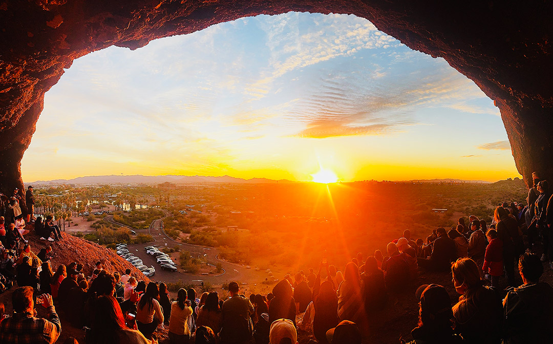 I burned off an eighth of that gigantic s’mores cookie by taking a very short hike up this sandstone formation in Papago Park. Hundreds of people had the same idea, but the view was spectacular.