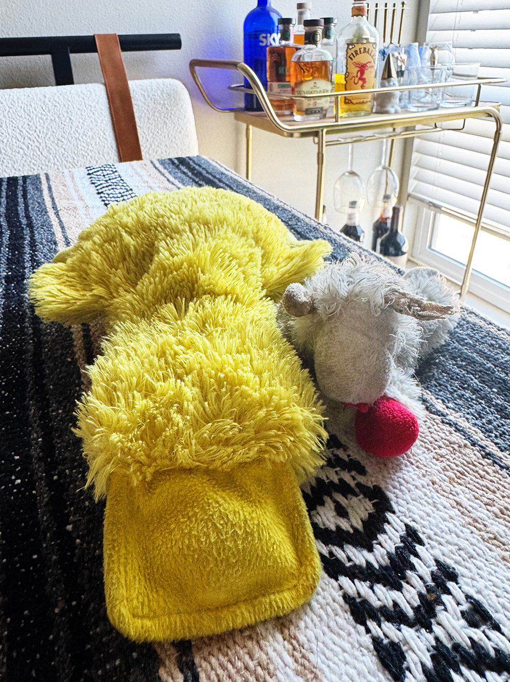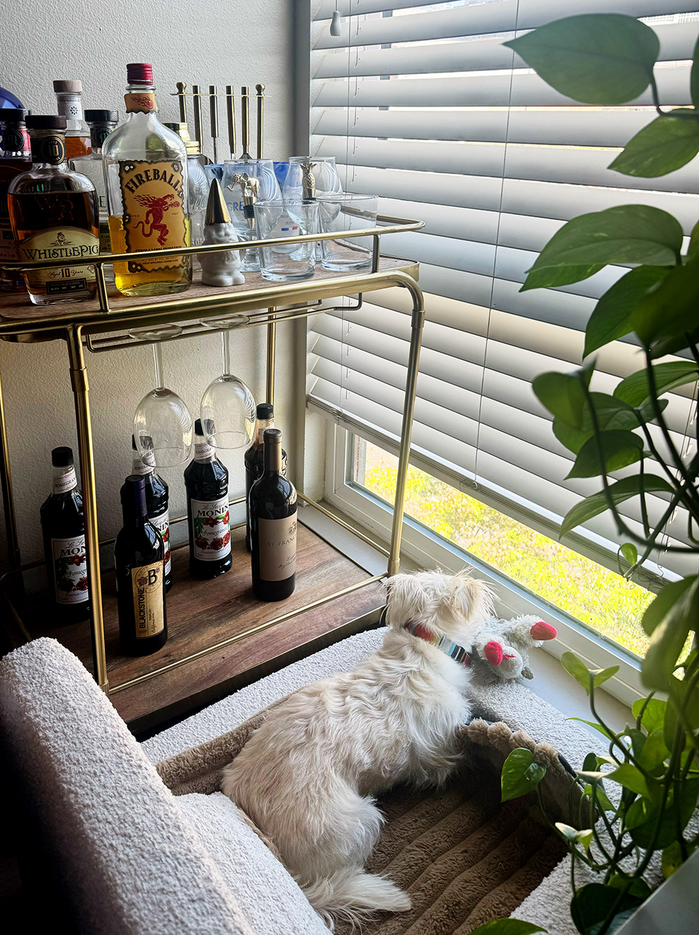 Because he’s such a traumatized velcro dog, he always has to be near me. I usually work from home at my dining table on my laptop, and you can always find him nearby, either snoozing behind me on the couch or playing with his toys on the floor. Lately, I’ve been noticing him looking out the window and wondering what’s going on outside (lots of construction happening across the street – they’re building the largest park downtown – and people walking down G). I moved his bed underneath the window and he’s finally using it! If I would’ve known he was such a chismosa, I would’ve put his bed there a long time ago 😆